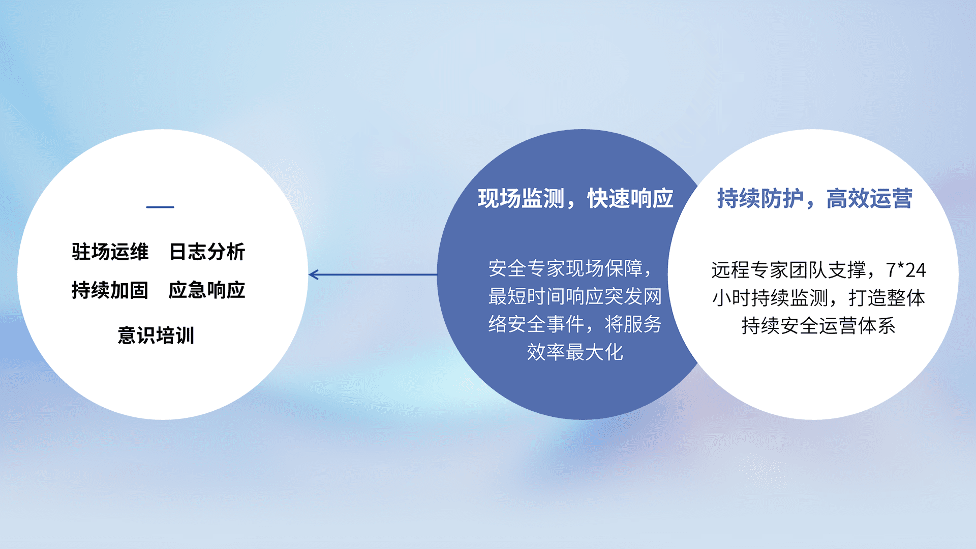 针对客户行业特性,,提供专属的一站式安全管理服务,,,,帮助客户全面感知网络空间威胁,,通过安全专家的线上、、、、线下防护支持,,,实现风险闭环,,,,将安全保障常态化,,,为客户打造常态化安全运维运营服务。。。